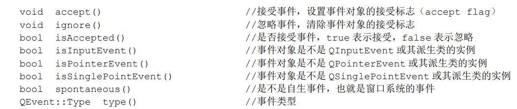 | keyPressEvent() | QEvent::KeyPress | QKeyEvent | 键盘按键按下 |