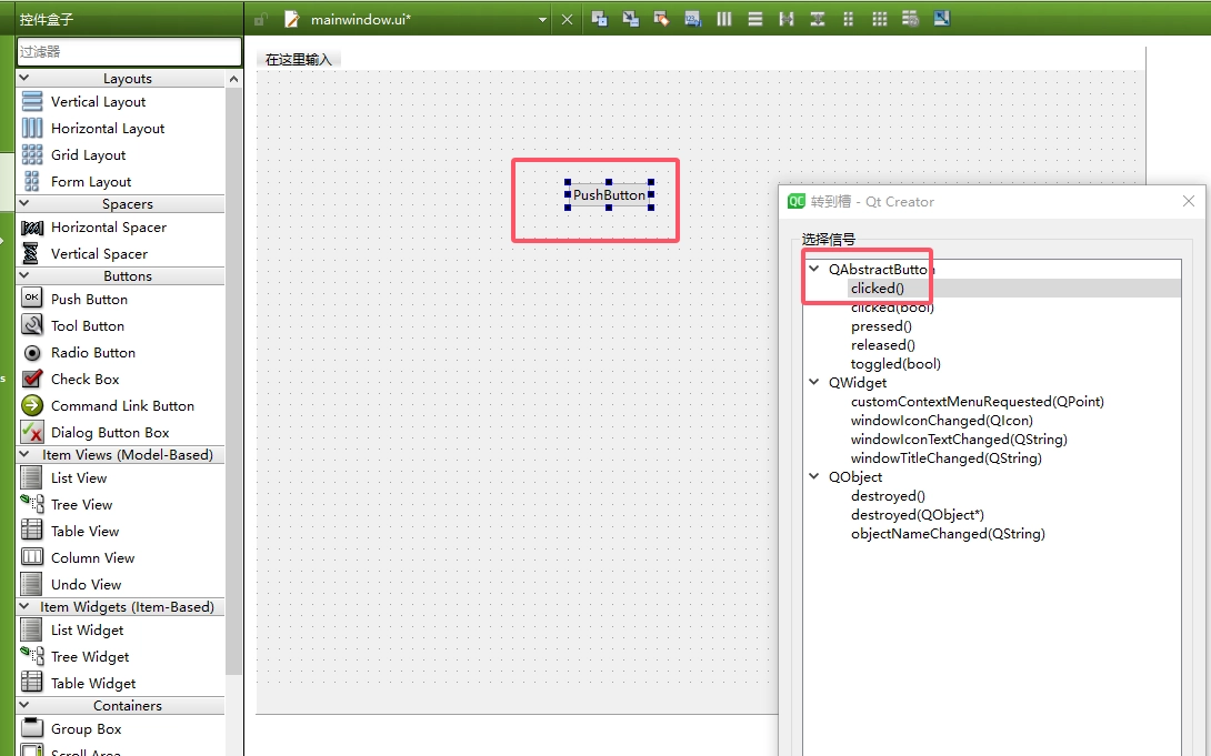 mainwindow.h中private slots部分自定义槽函数(void 随便名字)